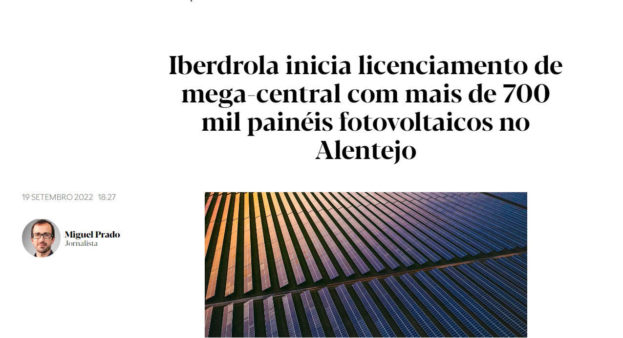 A Iberdrola está a construir centrais fotovoltaicas em Portugal depois de se ter submetido a um concurso competitivo e de ter feito a melhor oferta, em 2019. Há 3 longos anos.