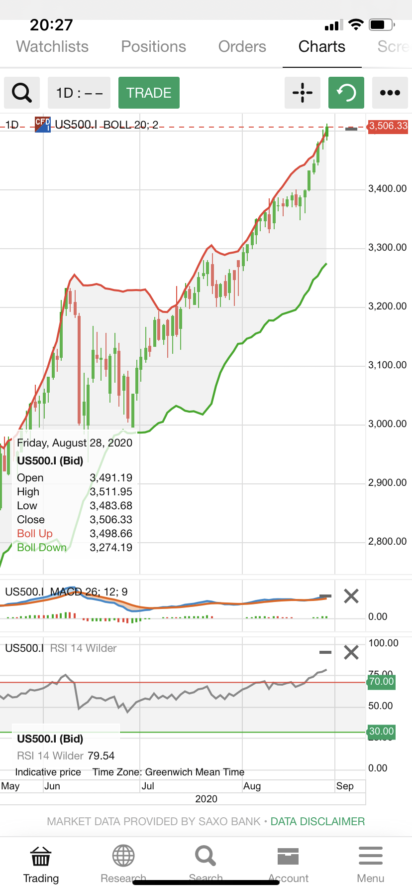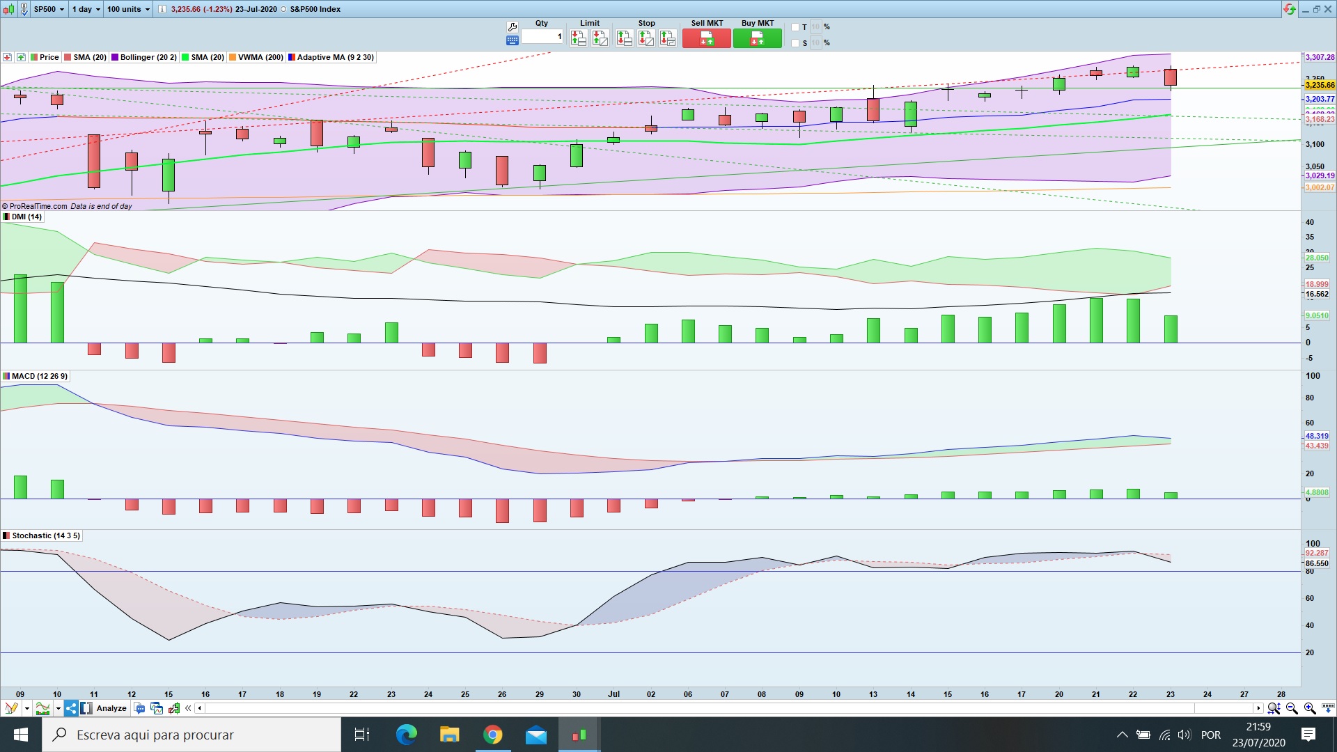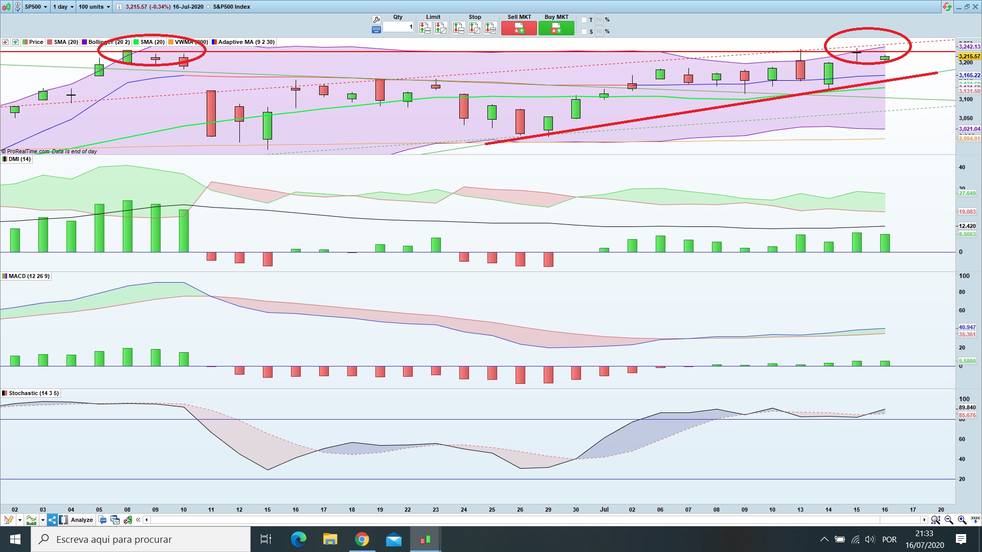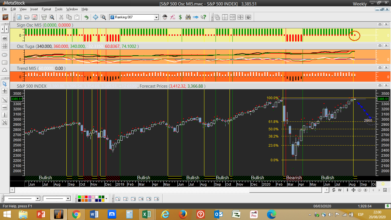 Na verdade o S&P 500 continua o seu movimento ascendente com aparente boa saúde e os indicadores que utilizo voltaram de novo com a palavra atrás, obrigando-me a passar de novo de neutral para comprado no índice.