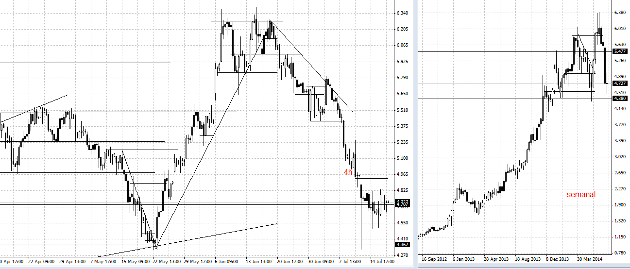 Para já, se o mínimo de hoje for considerado faz um higher low em relação ao ultimo mínimo 4,41, o que é positivo, e quando essa situação da Mota Africa se resolver, conjugada com os presumíveis bons resultados do 1º semestre a cotação vai voltar para valores próximos dos 6€