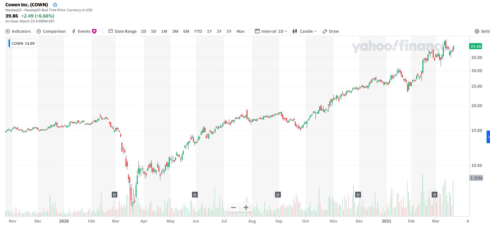 A segunda (COWN) descobri agora mas é tipicamente um daqueles casos de "buy & hold" como tem sido a APPS.