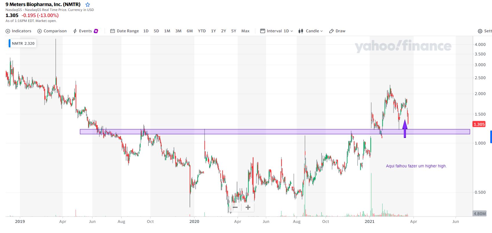 Alguém que possa ajudar com a leitura do gráfico da NMTR? Tenho andado para entrar na mesma para LP pois julgo que os produtos que tem na FDA poderão ter bastante impacto sendo aprovados e poderiam dar um trade interessante.