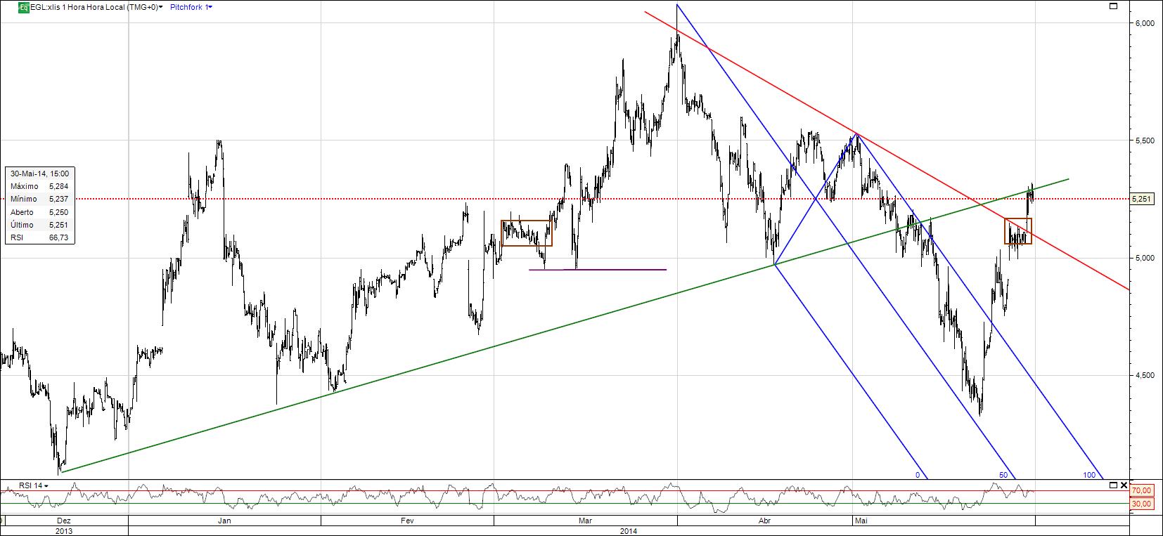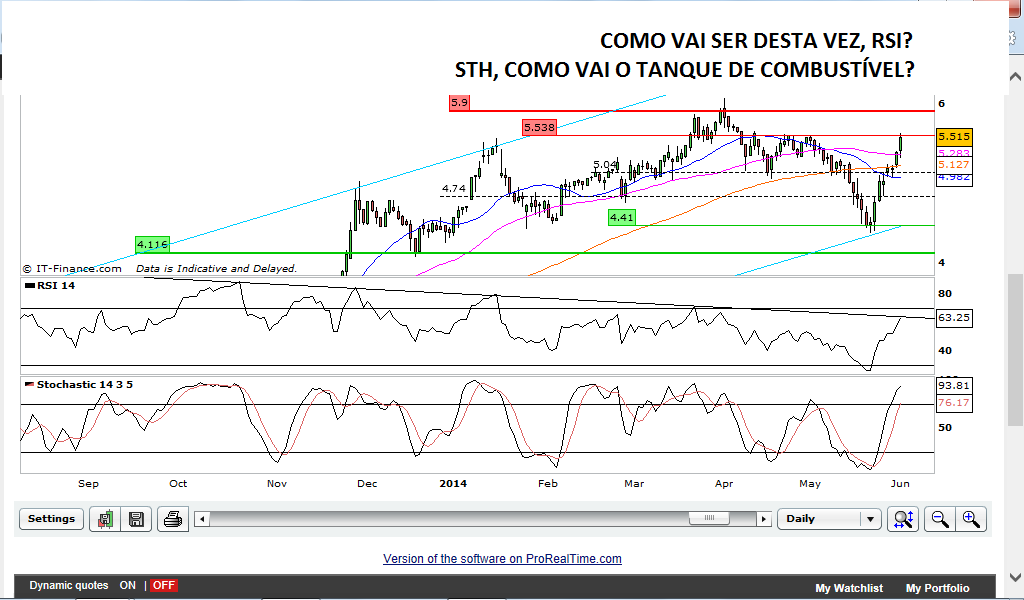 Para mim a correcção chegou ao fim, estou bullish em todos os prazos temporais. Não quer dizer que não venha revisitar a caixa castanha ou o suporte dos 4,95, novamente reposto.