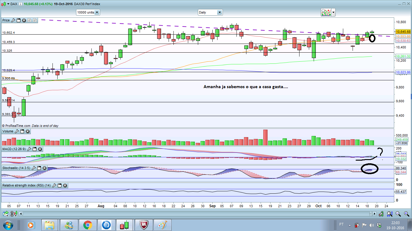 dax e mercados europeus encostados ás resistências numa indicação que há muita vontade em comprar ainda.