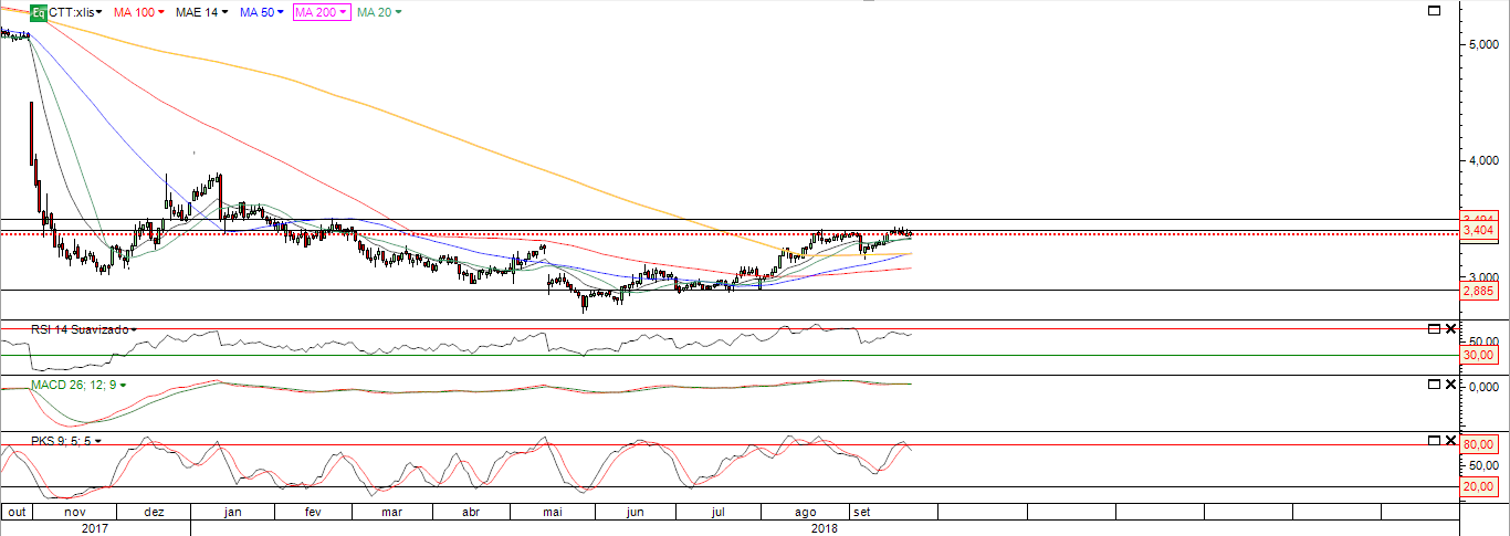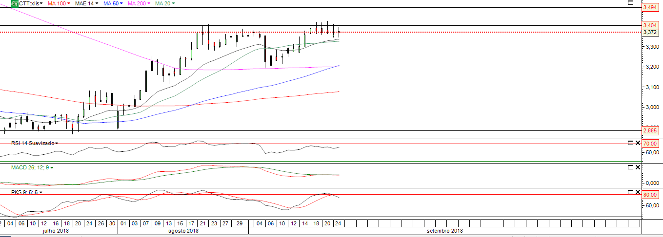 De qualquer maneira poderá ser um movimento interessante de subida de 0,70 cêntimos, desde que passe aqui a parede dos 3,40 com consistência.