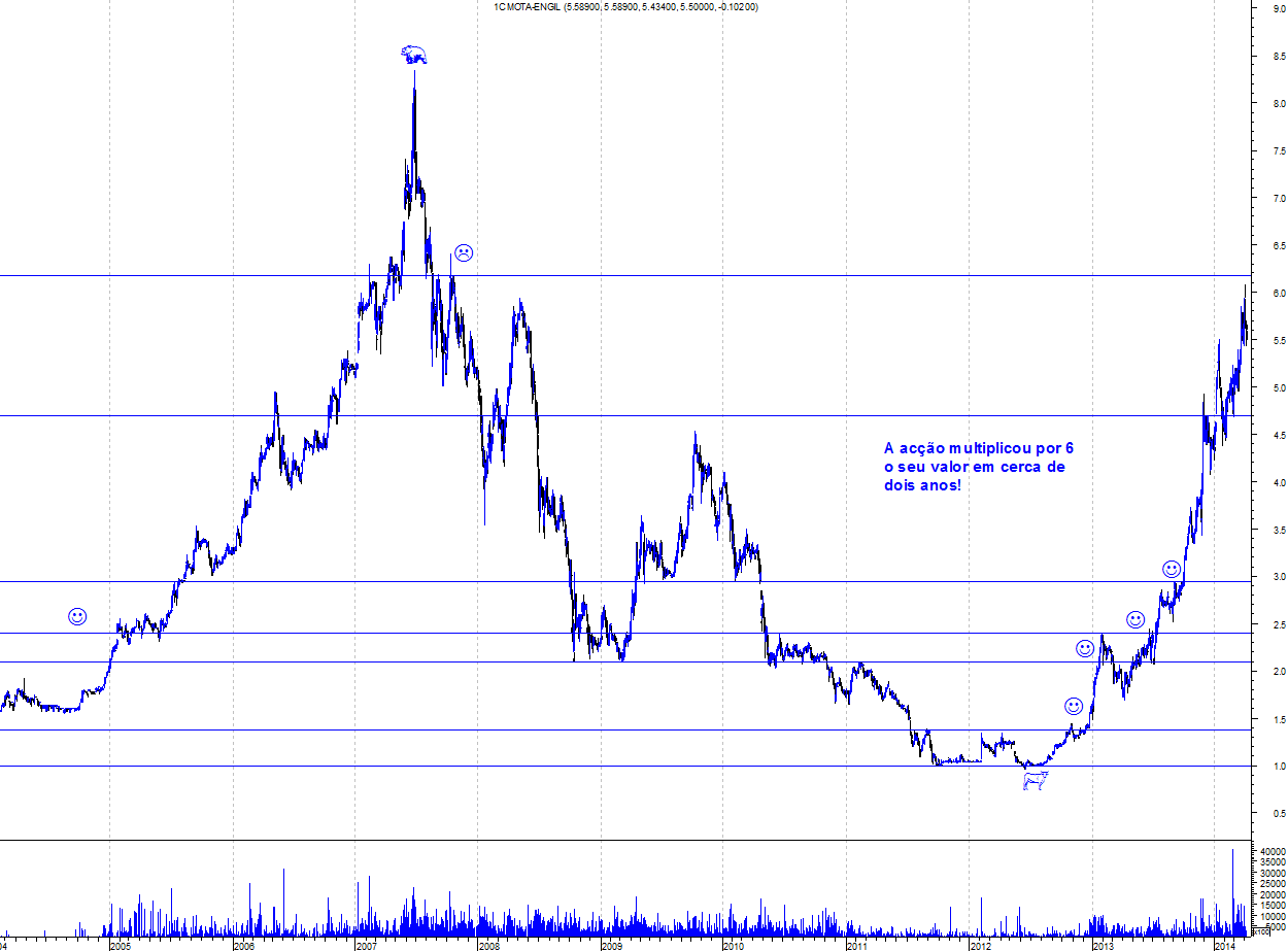 Flecha, deixo aqui os gráficos actualizados. Não dês importância à resistência que aparece acima pois deixei aquela linha no gráfico apenas para continuar a perceber quando é que tinha despido o meu fato de touro em 2007.