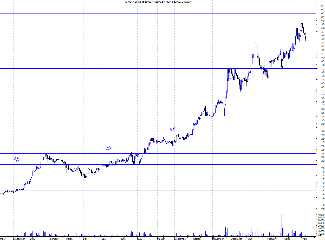 O desenho da LTA no meu gráfico, em que os 3 toques iniciais não tem qualquer furação, serviu de base até agora para a minha negociação na mota engil. E ontem o movimento foi bastante preocupante, aqui fica: