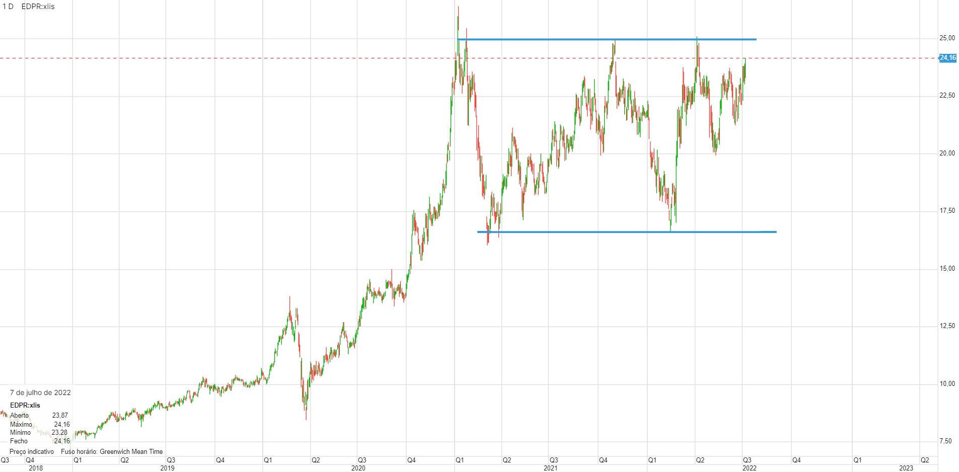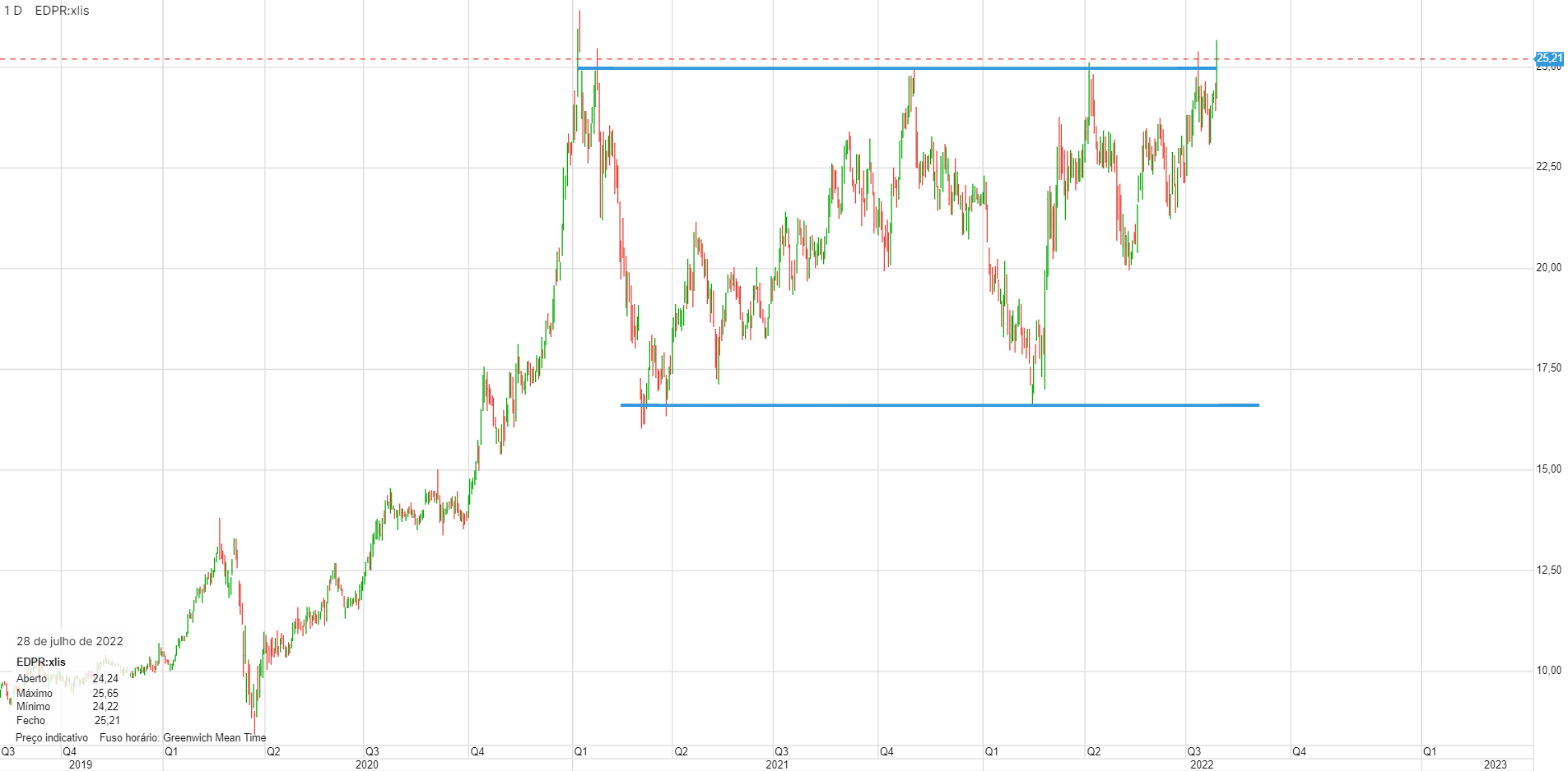Quebra da consolidação, vamos ver se arranca de vez. Máximo histórico nos 26,4€.