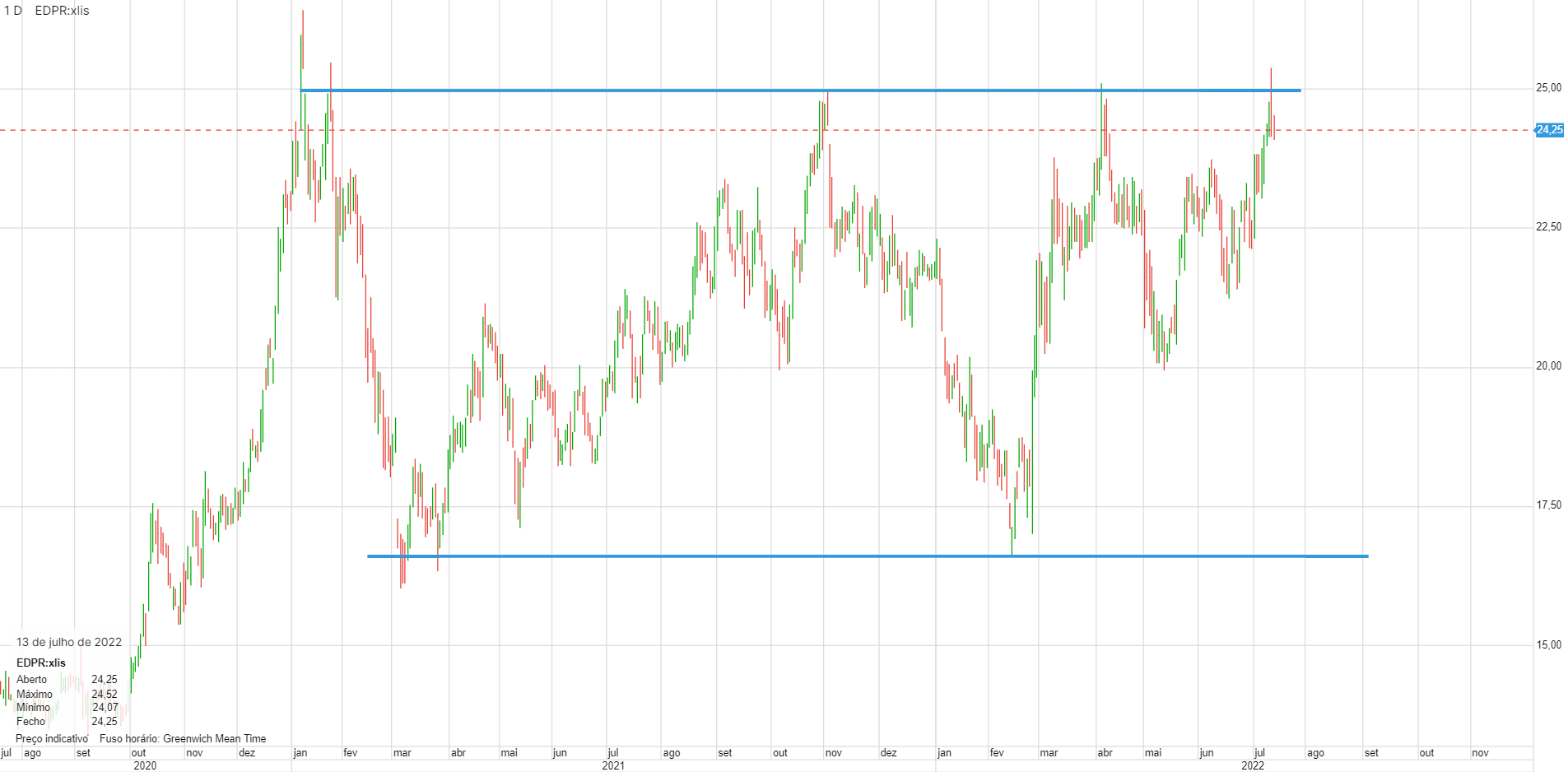 Primeiro assalto falhado. Mas tb é normal, eu também considerei vender as minhas acima dos 25. Vamos ver se tem força.