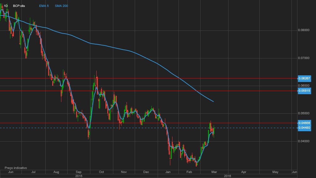Tive que mentalizar-me que um dia o BCP irá novamente aos 0.08 (2 anos)e o meu stop loss "emocional" está nos 0.03.