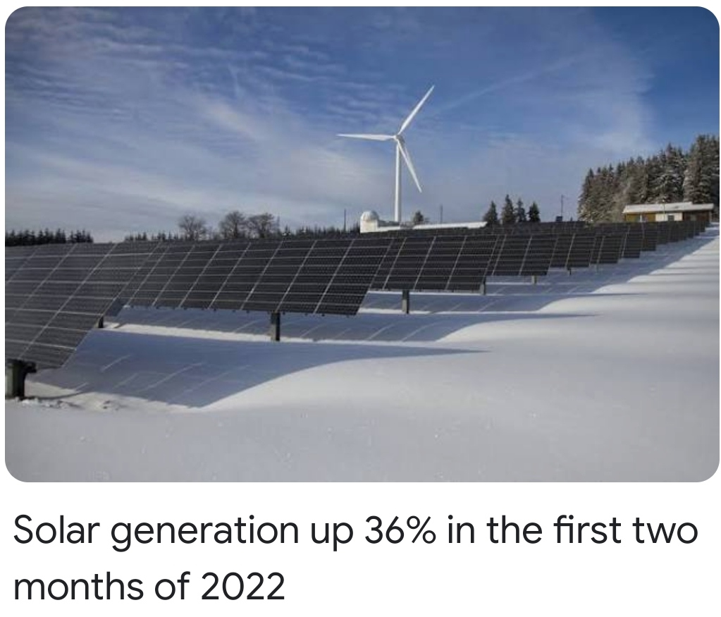 Through the first two months of the year, all solar PV generation reported by EIA combined for 23,862 GWh, up from 17,593 GWh through the first two months of 2021.