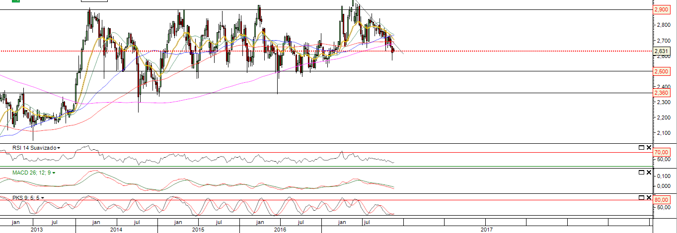 O ajuste será feito claramente no forte suporte no gráfico dos 2.50. Resta saber se aguenta acima deste valor .