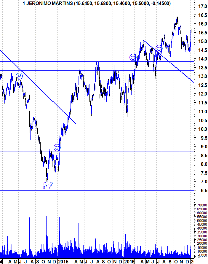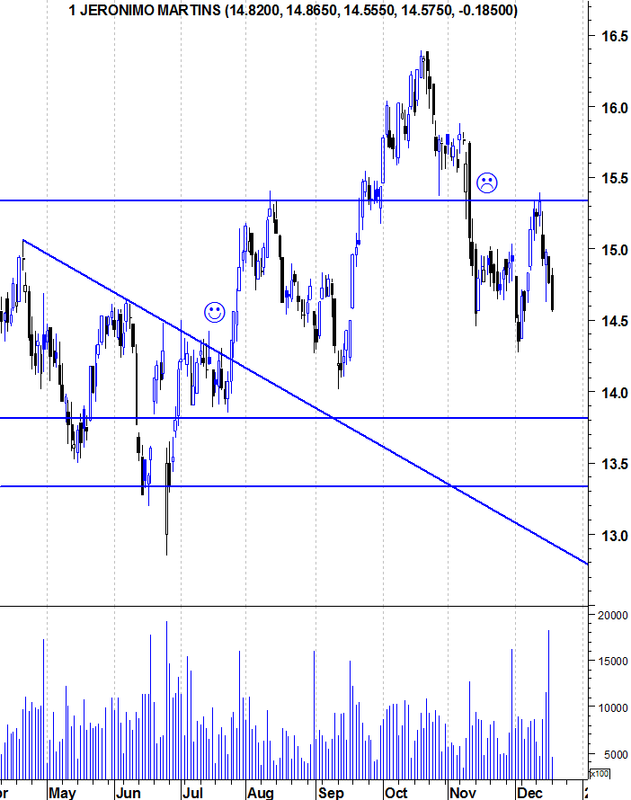 Parabéns e agradecimentos a todos os gurus da análise técnica que adivinharam o rumo descendente próximo suporte da Jeronimo Martins,