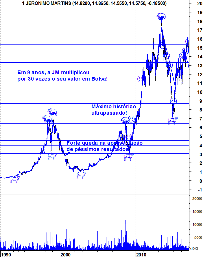 A JMartins está hoje imprópria para cardíacos... depois da abertura. teve uma queda de cerca de 2,5% que levou a cotação aos 15,23. Depois, foi recuperando e já esteve positiva cerca de 0,4%, nos 15,665 e, agora, está numa situação de equilíbrio, nos 15,60, que não se sabe se vai para baixo ou para cima.