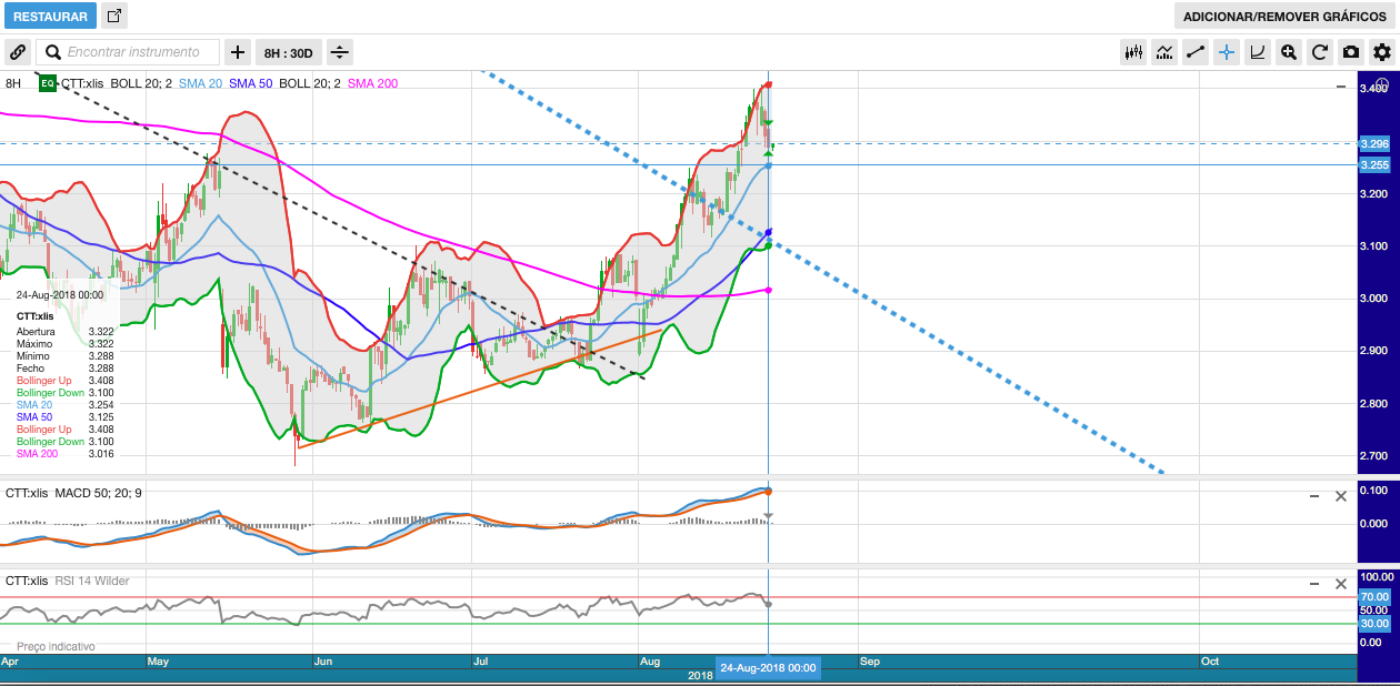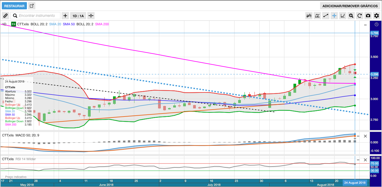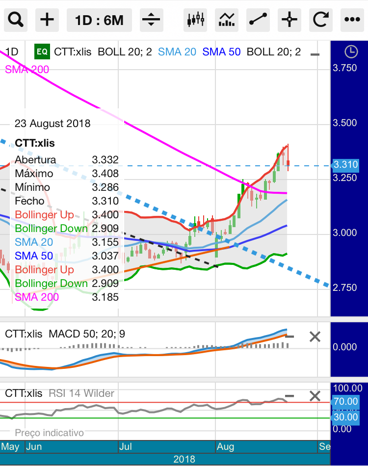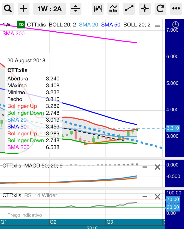 Para já os ctt a evoluirem muito bem , mas não quer dizer que não visitem suporte 3,10 só que não vai ser fácil lá chegar.