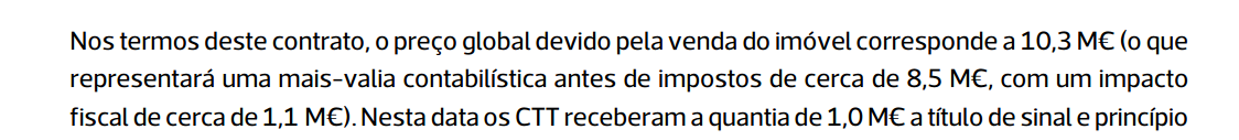 A venda acordada dos imoveis até ao final do ano são líquidos de impostos 7.4 Milhões ( E não 8.5 milhões)