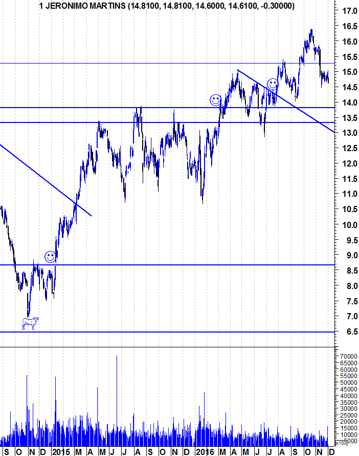 Rango Escreveu:Mais um reforço na Jerónimo Martins. Compra a 14,645. Preço médio = 14,7725. O final do ano está-se a aproximar e continuo à espera de qualquer novidade sobre um possível dividendo extraordinário.