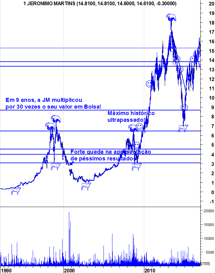 Foi a razão apresentada pelo Jornal de Negócios. Não vejo outra razão. Já viste os lucros apresentados pela JMartins nesse período que referes? Já viste como sobem todos os trimestres/ semestres/ anos? A JMartins vem de uma queda recente que a levou aos 14... é natural que com a recente subida dos mercados, ela também venha a recuperar dessa queda... o que não é natural é o mercado estar praticamente flat e a JMartins descer 2%...