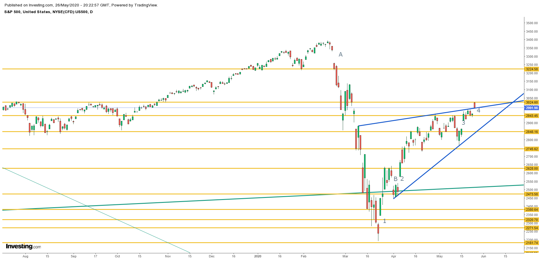 Nasdaq a ameaçar (mais) um IHS com target no topo do canal e o SP (mais) uma wedge com Target pelos 3100.. impressionante. Não vale a pena tentar justificar, para já é esta a realidade, temos figuras de continuação a ser confirmadas e potenciais figuras de inversao invalidadas uma atrás da outra.. suponho que a máxima follow the trend esteja plenamente justificada. Caso a figura no sp se confirme entrarei curto pelos 3100.