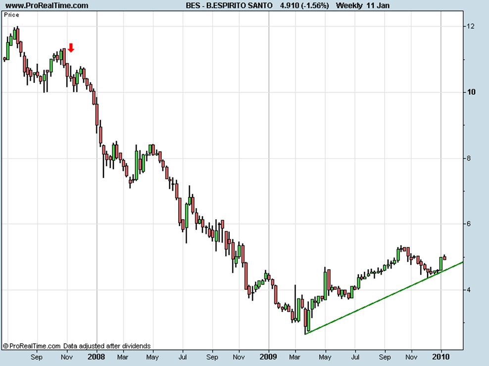 Boa noite Zeb_pt, junto anexo um gráfico semanal do BES com as referidas velas e não consigo perceber em que te baseias para afirmar que não é um bom investimento a médio prazo.