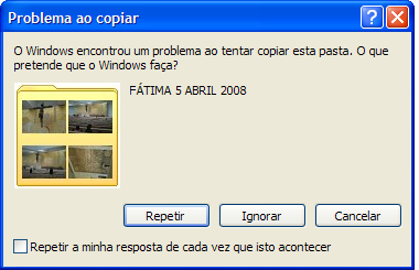 o erro que está a dar - deve ser por se tratar de uma pasta do prório windows.