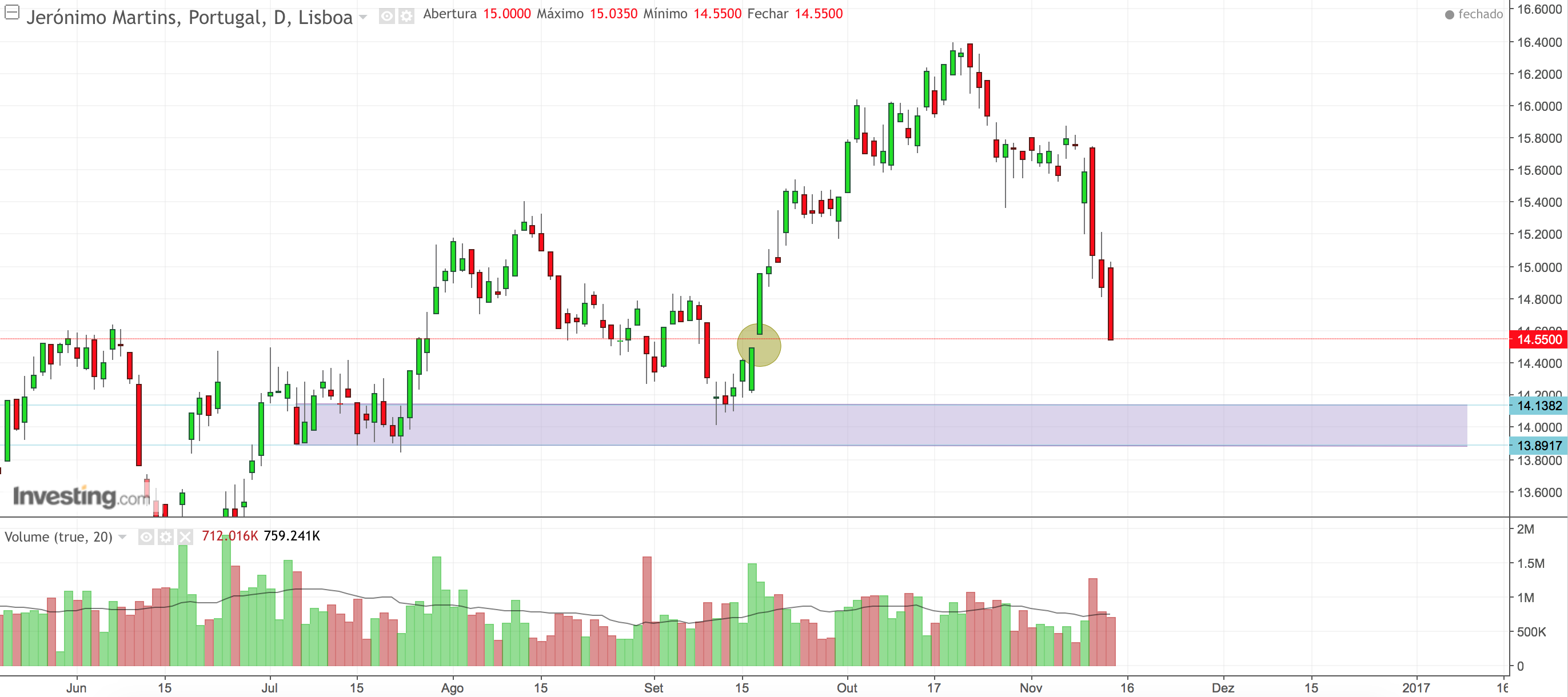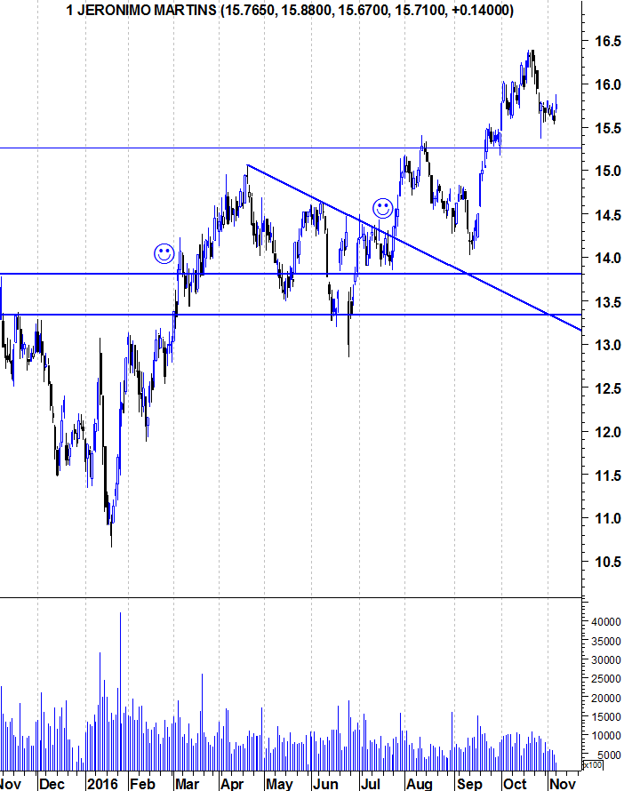 Não estou a gostar da fraqueza da JMartins. Num dia em que o DAX sobe mais de 1% e o PSI sobe cerca de 0,6%, a JM continua a avermelhar.