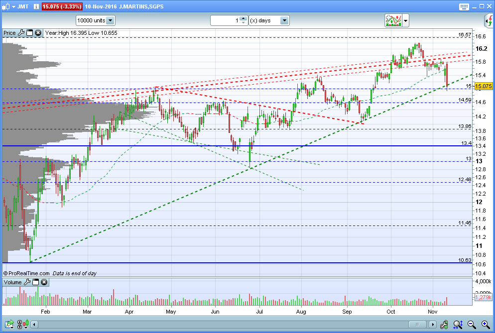 Ordem de compra colocada a 15,66, na tentativa de apanhar alguma pequena queda no fecho. Quero reforça o peso da JM na minha carteira e aproveitar estas retrações costuma ser lucrativo.