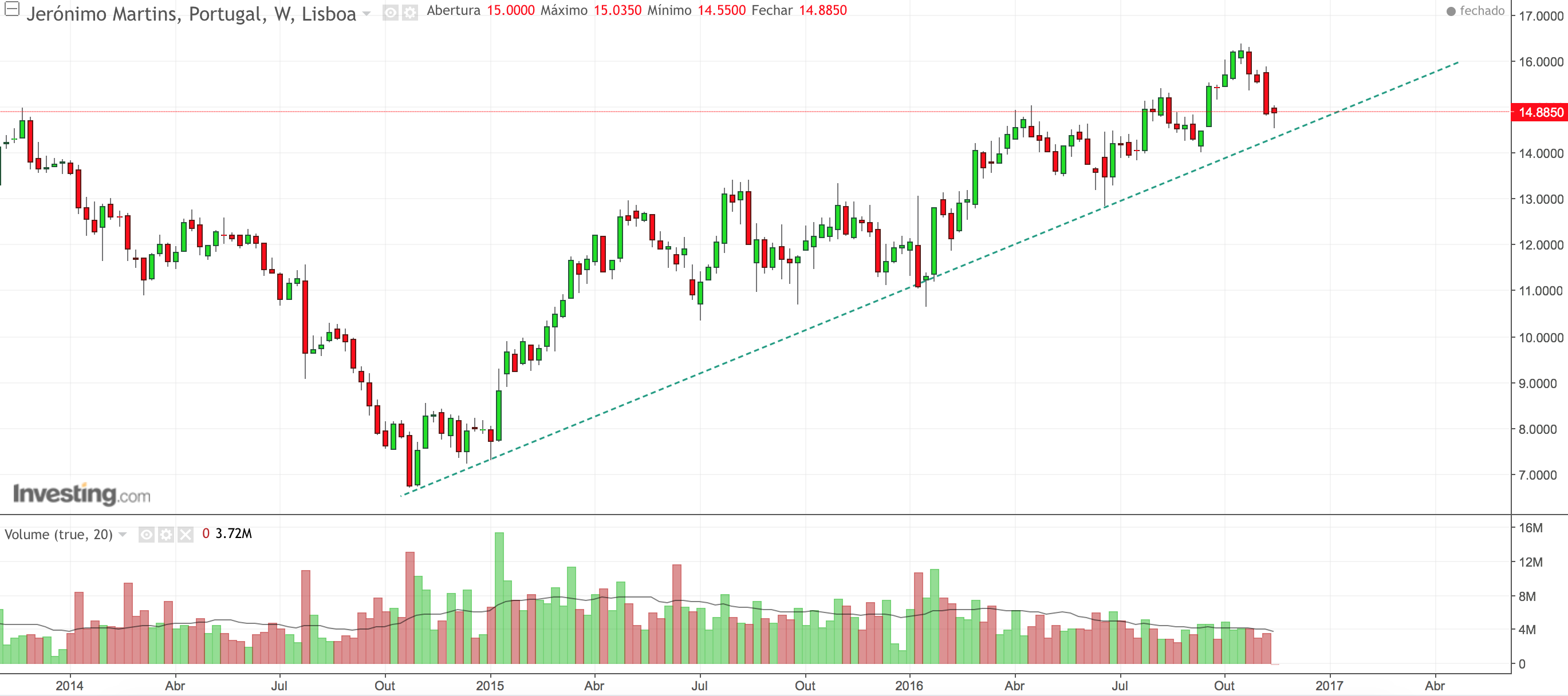 Aqui ficam os gráficos actualizados do "Bull Market" da Jerónimo Martins.