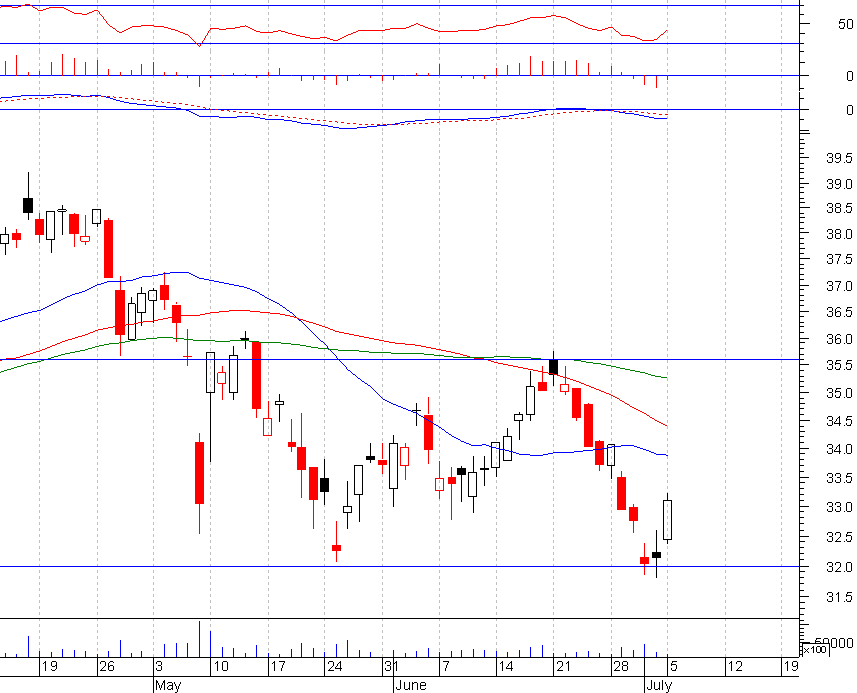 A situação técnica actual é de expectativa. Se o seu suporte aguentar, poderemos vir a assistir ao disparo de um sinal de entrada potencialmente lucrativo (target nos € 37,00). Por outro lado, se o suporte for quebrado em baixa, provavelmente assistiremos a uma continuidade das quedas.