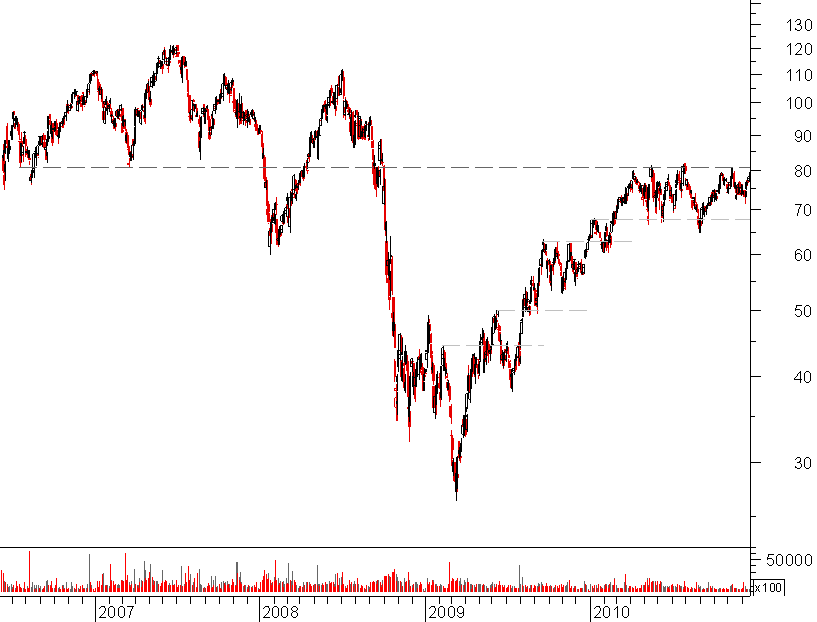 Uma eventual quebra da resistência por parte do índice deverá vir acompanhada (sendo aliás uma consequência directa) da quebra das respectivas resistências por parte das acções que o compõem, mormente as que têm um maior peso no índice.