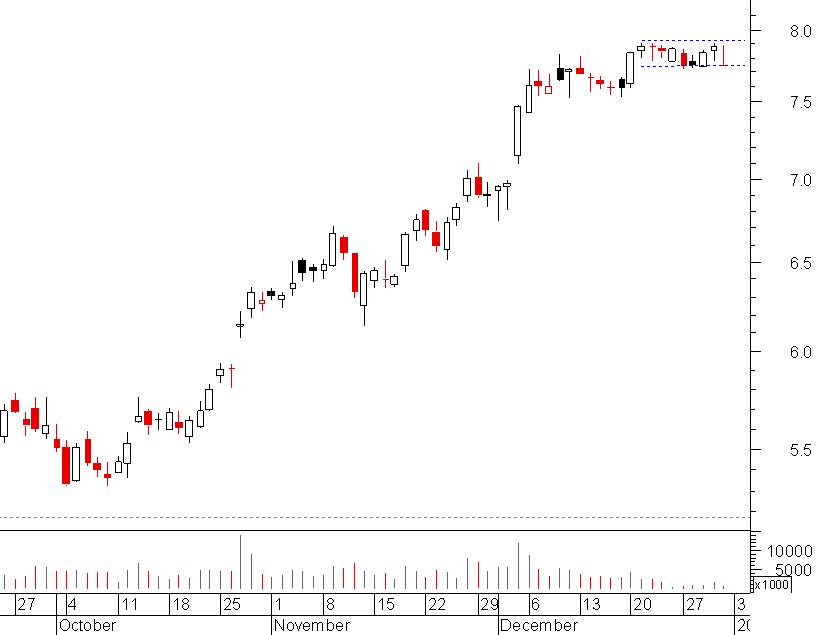 Parece-me que do ponto de vista técnico tem tudo para ser considerado um triângulo. Os toques, o volume forte no início e na roptura. No entanto carece de confirmação pois pode tratar-se de falso break. O correcto parece ser deixar subir mais uns dias e tentar entrar no Throwback. Pela análise teríamos uma ida próximo dos 46 euros... era muito bom. Mais, dava para reflectir numa eventual saída de Renault e entrada em Total