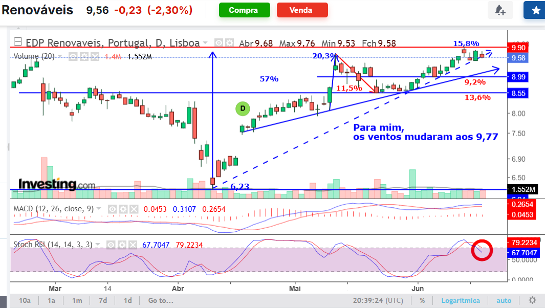 9,77-9,39=0,38. Não as recomprei porque me pareceu que iria corrigir mais.