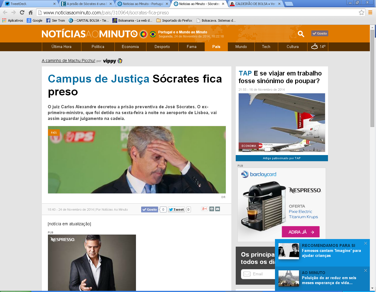 Nota: não faço ideia se o caso BES está relacionado com a prisão do ex-PM ou com os Vistos Gold, mas não me admirava nada.