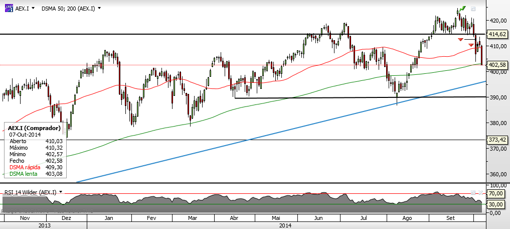 Encontra-se junto ao suporte que se tem aguentado muito bem, enquanto não houver quebra do mesmo continua em tendência ascendente. Neste momento é das poucas praças mundiais sem um Lower High ou Lower Low.