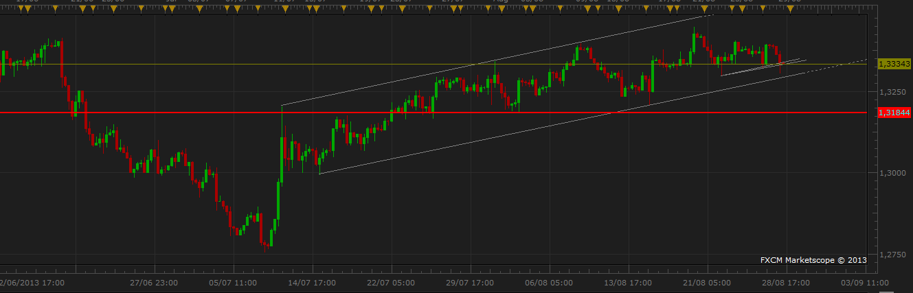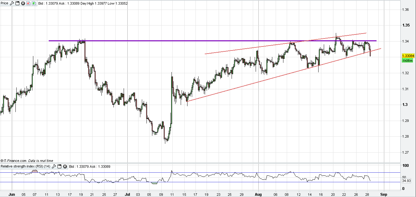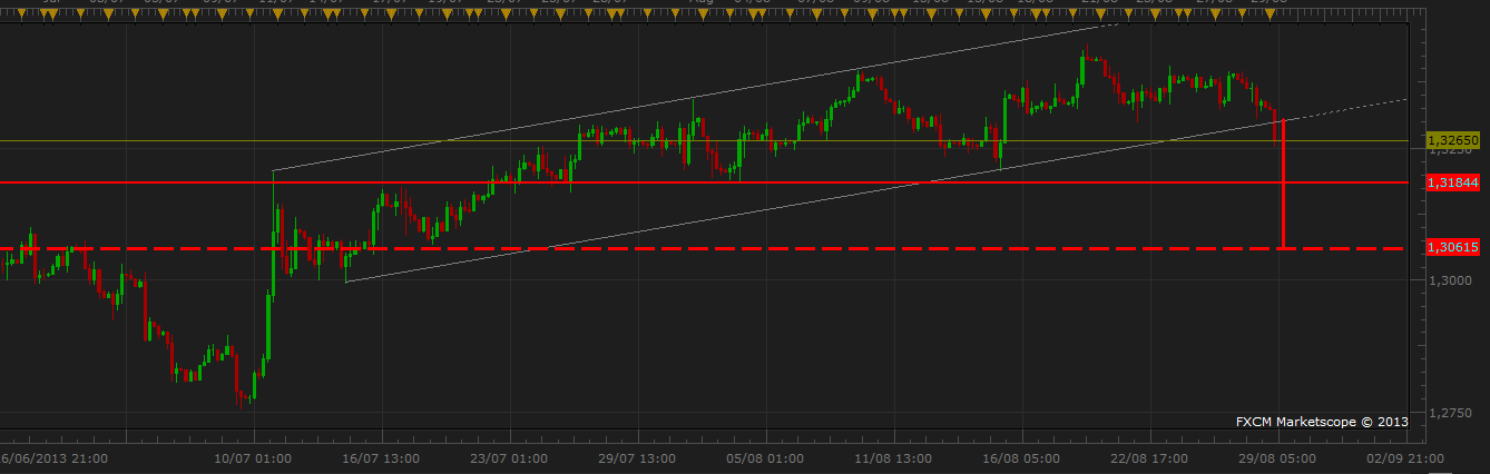 Como já tinha afirmado, com a quebra do canal ascendente do euro, o par já só deverá encontrar suporte nos 1,3185 e esse será o nível que irei vigiar de perto, caso o par evolua nesse sentido durante o dia de hoje.