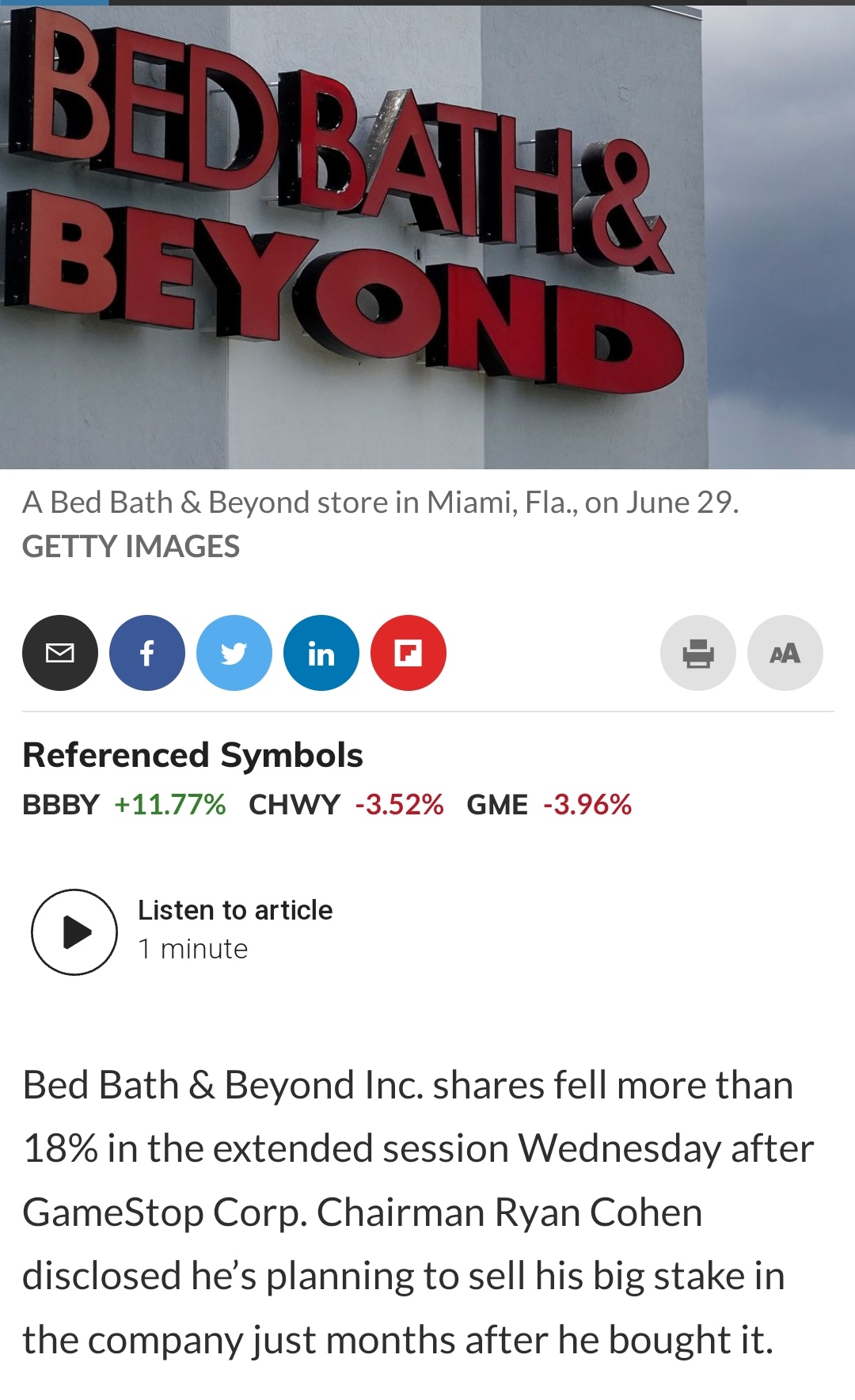 Entretanto, consta que o Presidente da GameStop, Ryan Cohen, lucrou 68 milhões de dólares com a venda de ações da Bed, Bath & Beyond.