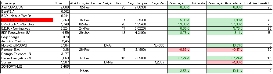 Para sexta-feira não tivemos qualquer alteração de posição, como tal não postei.
