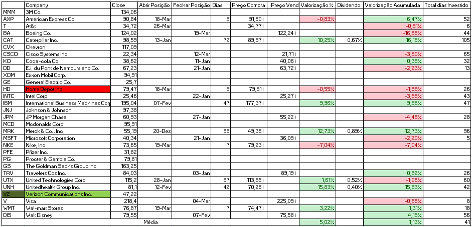 Para o ultimo dia do mês temos a indicação de venda da Home Depot e Verizon.