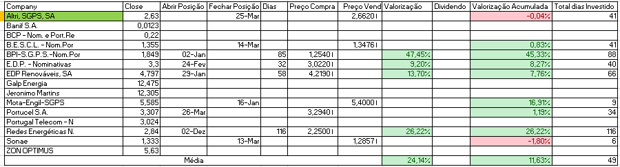 Mais um fecho de um mês e nestes primeiros 4 meses temos conseguido ter valorização positiva em todos eles.