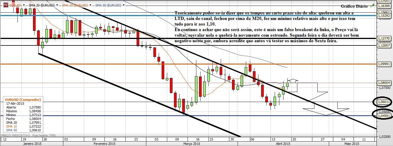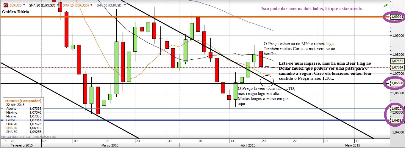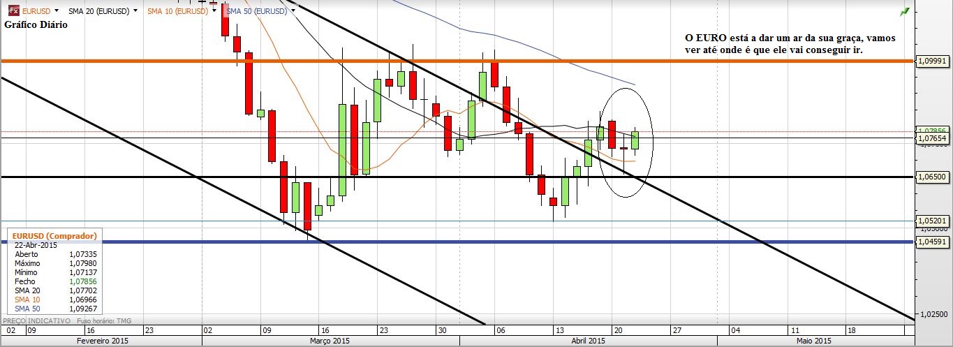 Agora é possível ir aos 1,10 e até um pouco mais acima. O que eu acho é que o EURUSD agora vai simular uma inversão de tendência para depois sim, descambar à Grande e atacar a paridade.