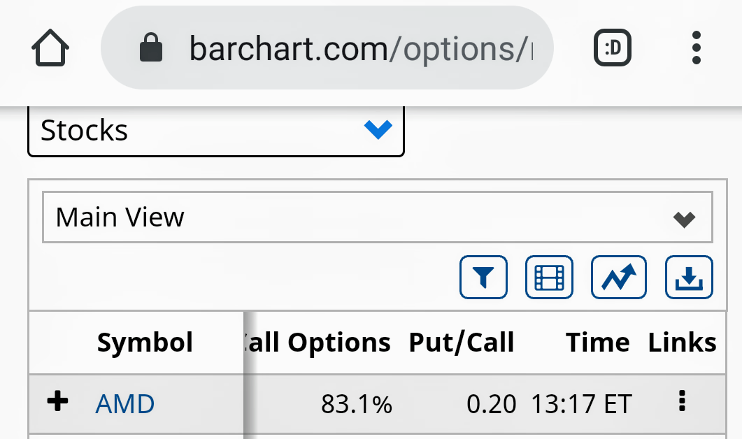 Mas a AMD teve um aumento exponencial de volume de OPTIONS (call & put) e estava com um Ratio de 0,20% (muito baixo) às 13:17, hora de Nova Iorque.