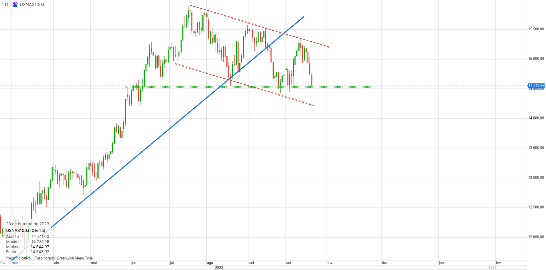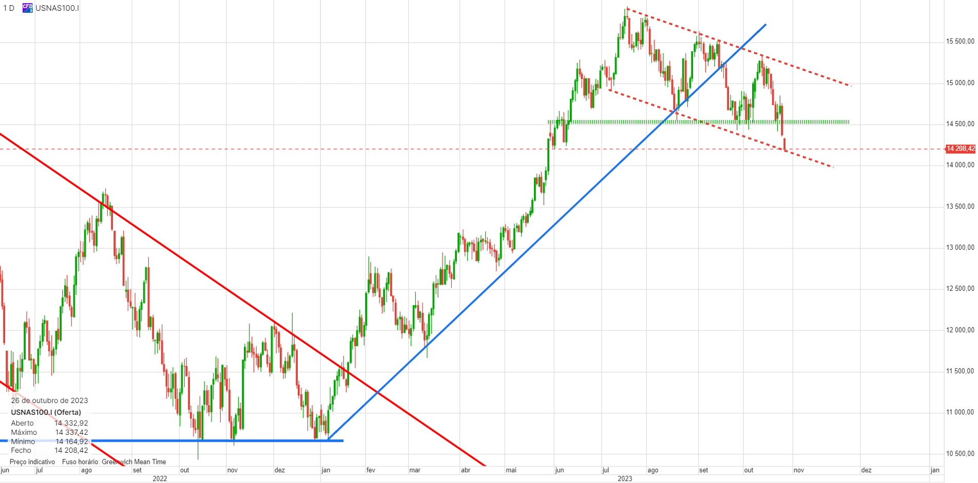 É a 4ª vez que o nasdaq testa estes valores e esta zona tem-se revelado um bom suporte. Penso que acabará por ceder e ir para perto dos 14000. Espero voltar a abrir curtos, ainda esta semana, 100 ou 150 pontos acima.