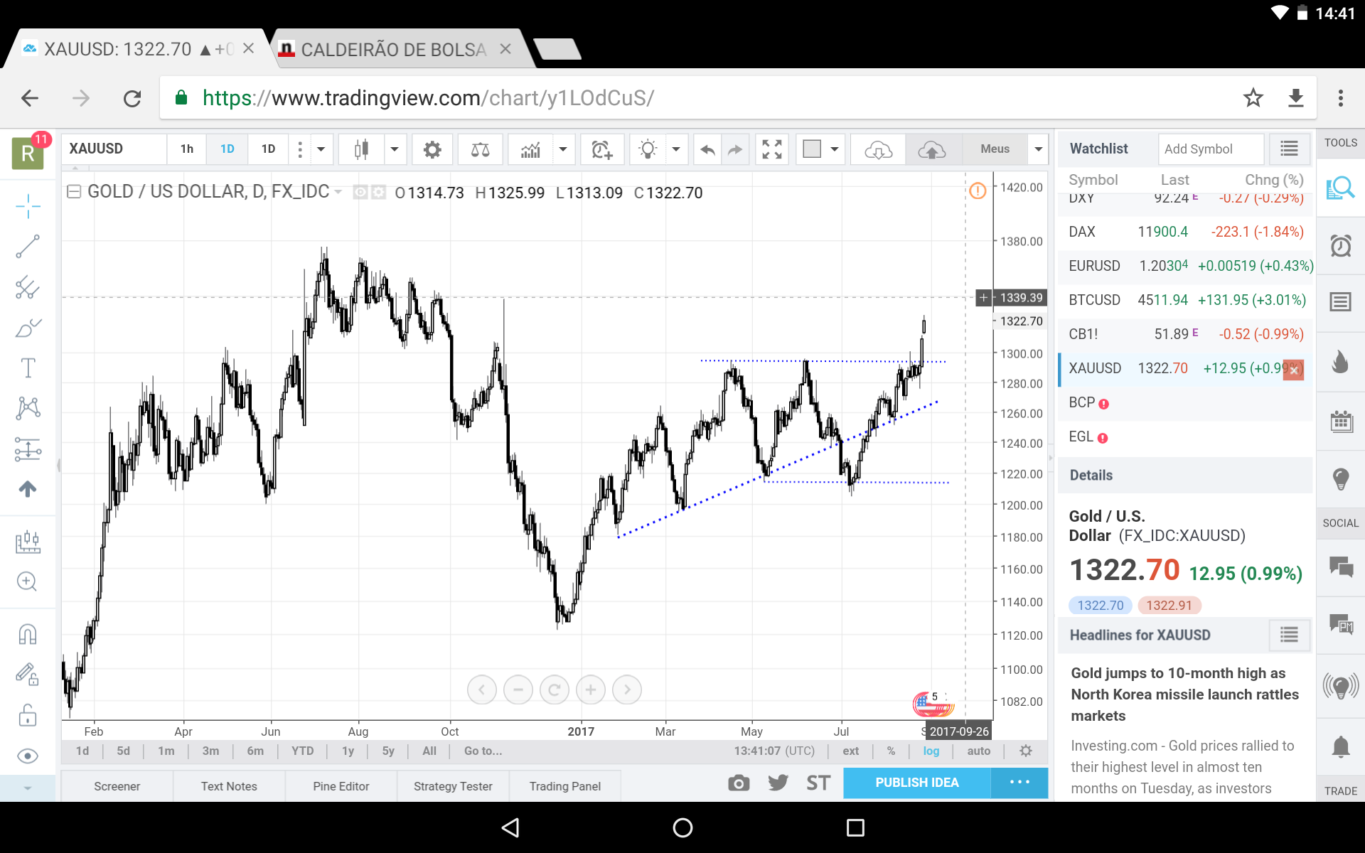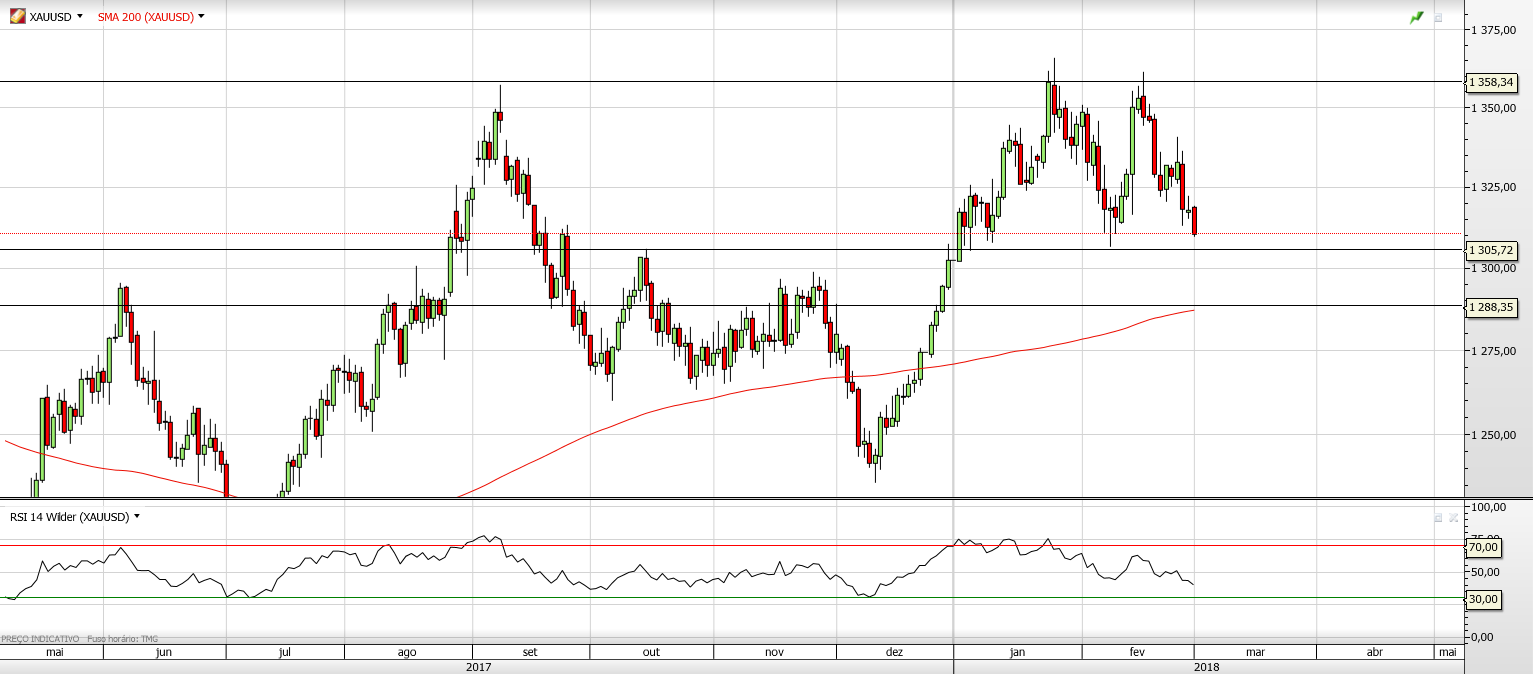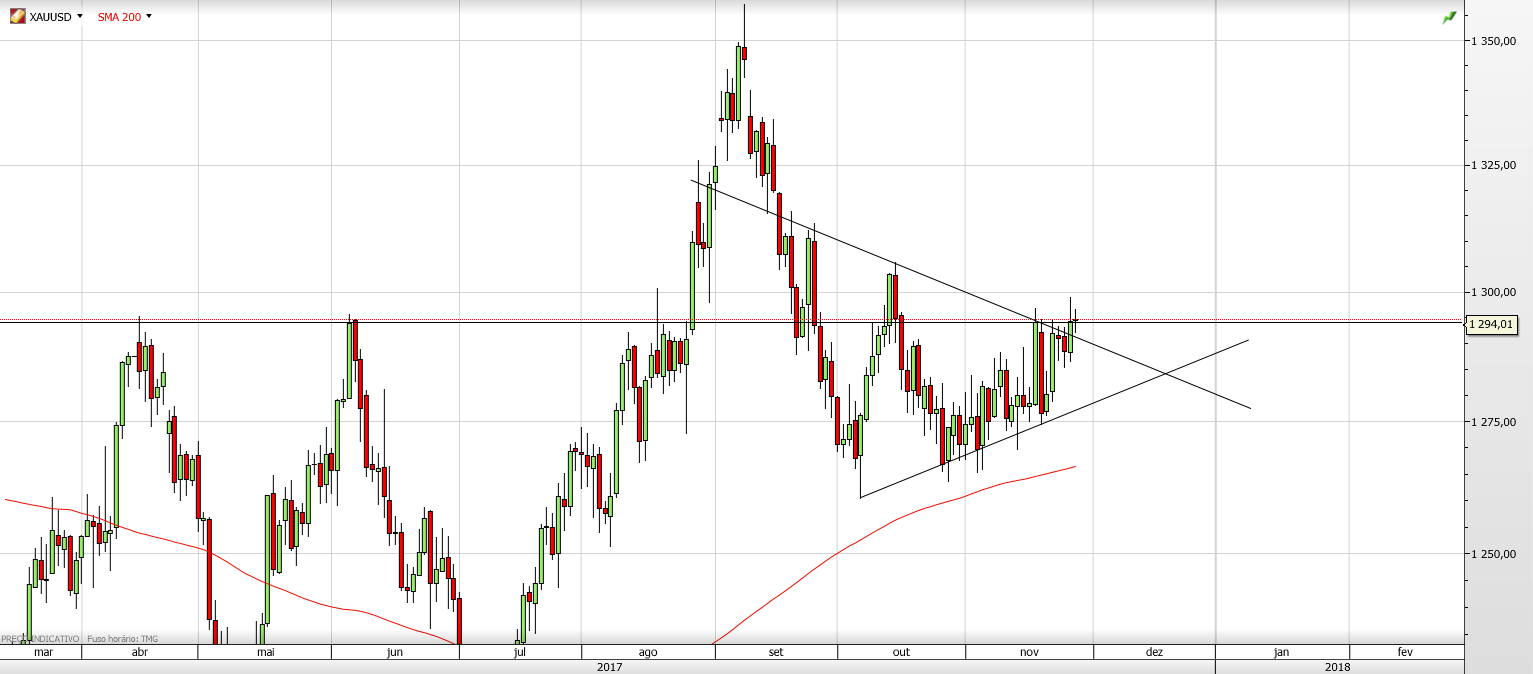 O Ouro ou reaje nesta zona onde se encontra, referenciada pelo Jgut, ou pode ir mesmo á SMA200, veremos