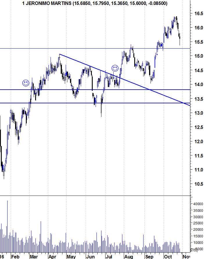Aqui ficam os gráficos actualizados da Jerónimo Martins, numa retracção do seu "Bull Market".