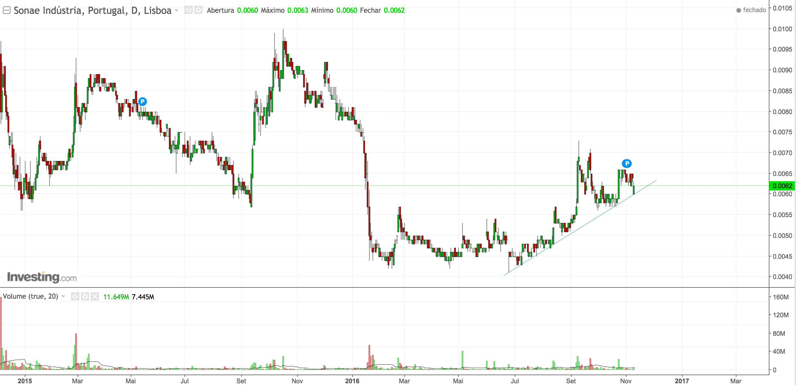 A soni ontem teve uma boa subida... e tao importante como a subida foi o facto de nao ter visitados os minimos anteriores ... ficando ali pelos 0.0057€/accao e depois arrancou ...