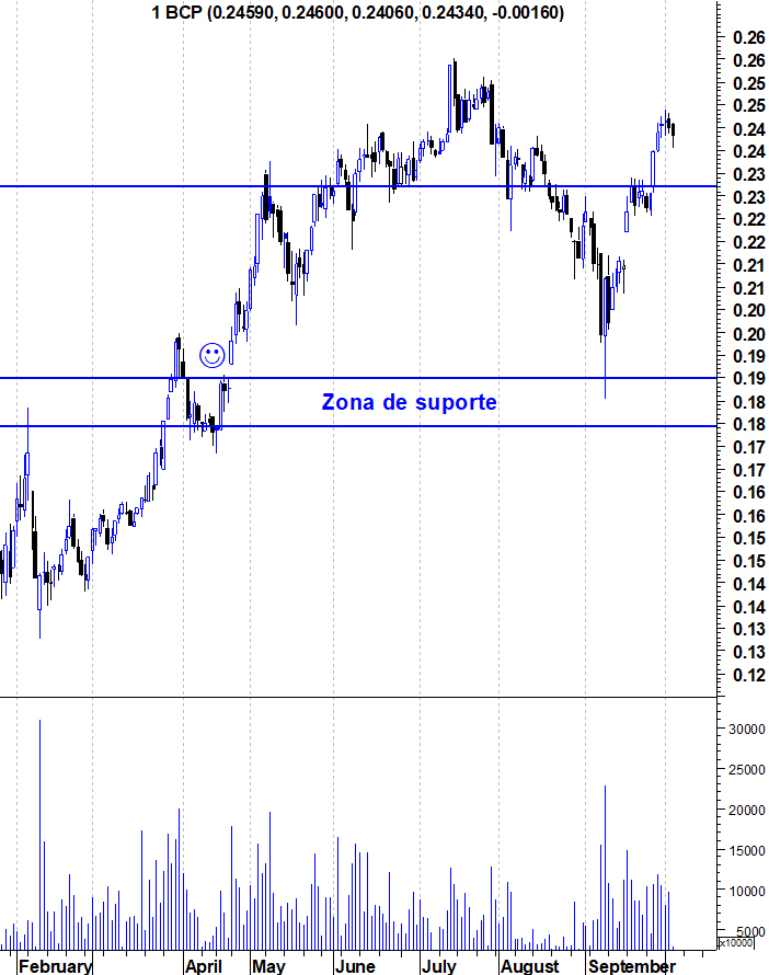 Em relação ao Bcp, tudo igual, espero por ele novamente nos 0,228.