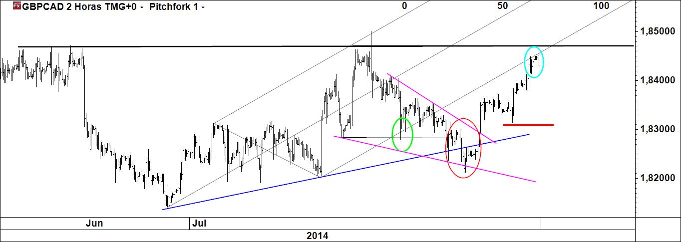 gbpcad 2 h: um dos targets atingido; por este motivo, deixar-se-á de fazer o acompanhamento deste negócio, que por isso se deve considerar concluído.