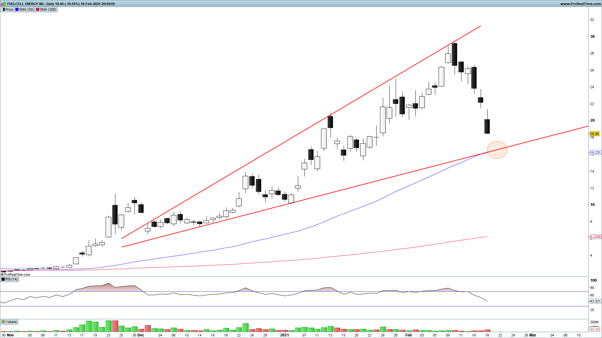 Batendo um pouco abaixo da linha de suporte ascendente, ou seja, um pouco abaixo dos $18, talvez seja um bom ponto de entrada