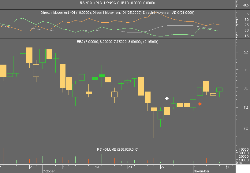 BES fez mínimos no dia 24, e desde essa data que parece querer formar um fundo de curtíssimo prazo e não me admiraria que a qq momento possa imitar os outros. Qq posição longa tomada nesta zona deve ser bem vigiada e exige uma decisão se vier a perder em fecho os 5,612