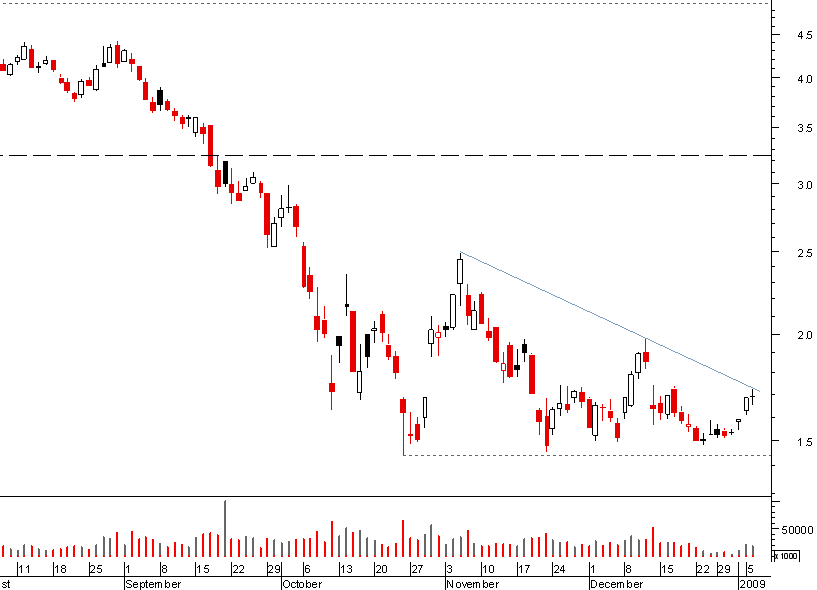 Gráfico actualizado com o fecho de ontem (hoje sobe mais de 3% para os 1,69).
