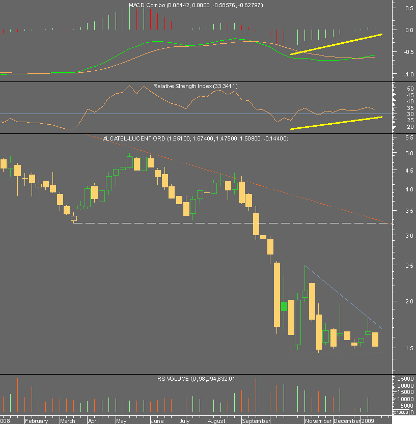 Hoje a Alcatel deu um tombo de 10% mas o gap da ilha reversiva ainda não foi totalmente fechado. Curiosamente o fecho de hoje foi igual ao do dia 10 de Outubro por isso pode estar a formar o segundo ombro de uma H&S invertida.